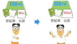 そのため、実際に測り直すと面積が大きくなる場合や小さくなる場合がほとんどです。このような場合に実測した面積を登記簿面積と合致させるためにする登記手続きです。